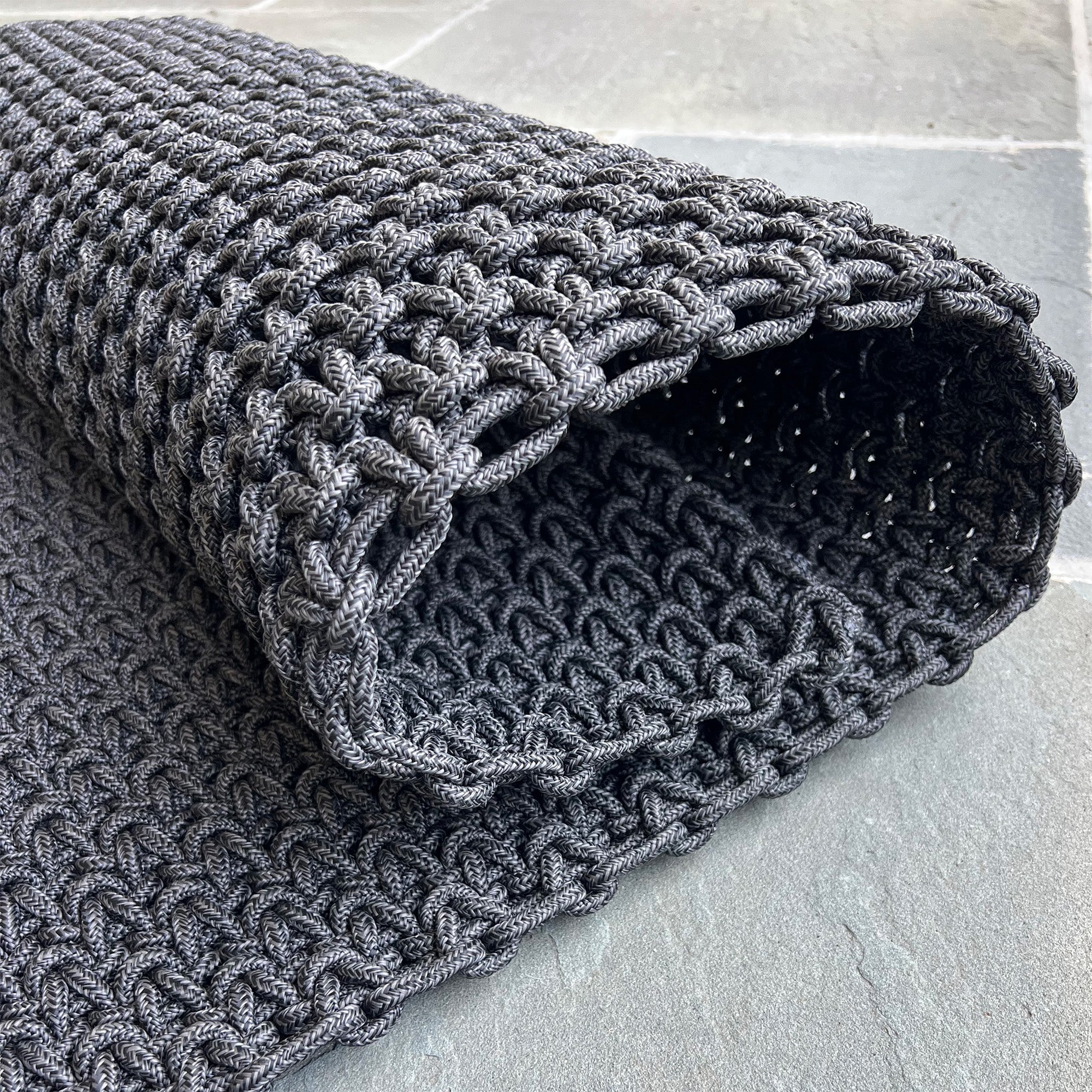 Specifically designed to stay outdoors, The Porter isn’t fussy. Regularly shake out or brush off dust, dirt, and debris (a sign that those spaces between the knots are doing their job), and hose down as needed for a deeper clean. Still see mud or gunk? We recommend using mild soap and lukewarm water, then rinsing your mat and hanging it to dry. Got a stubborn spot? Mix 1 cup of hot water with ½ teaspoon of mild detergent, dab the solution on the stain with a clean cloth, then rinse and air dry.